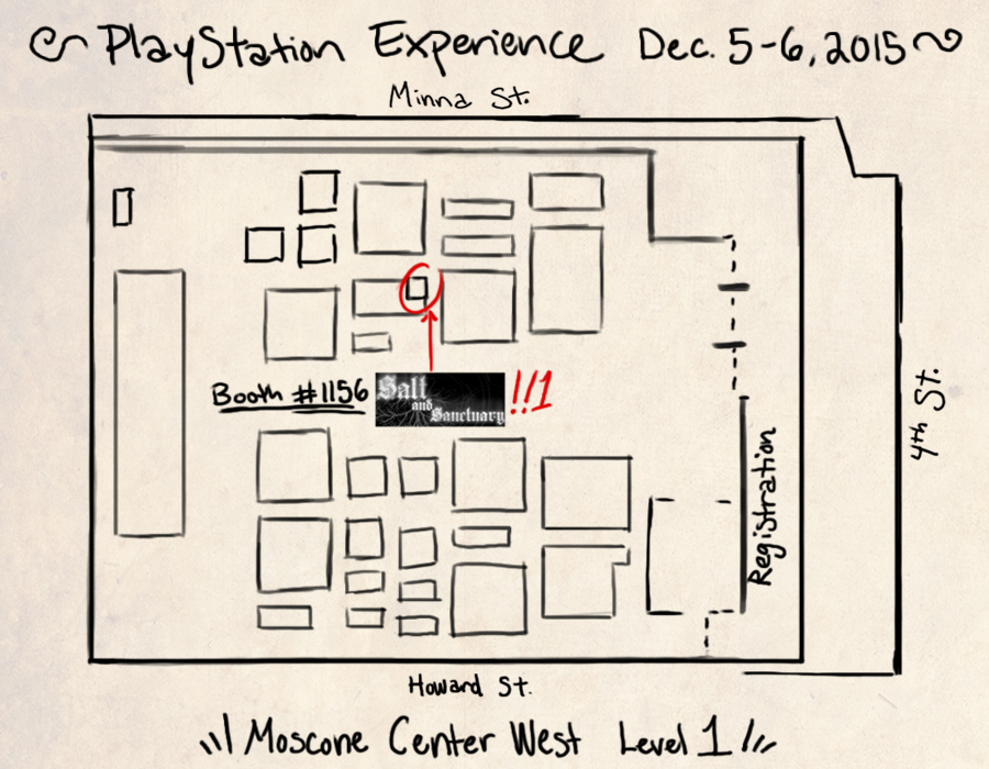 Come play Salt and Sanctuary at PlayStation Experience!. We’re sure to have other goodies like our widely popular buttons and shirts. You betcha there will be tote bags, too. We’ll be there so be sure to say “hi, awesome dudes.”
